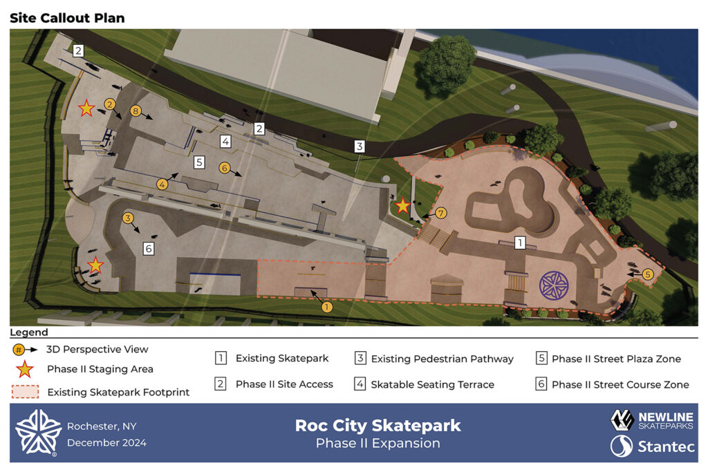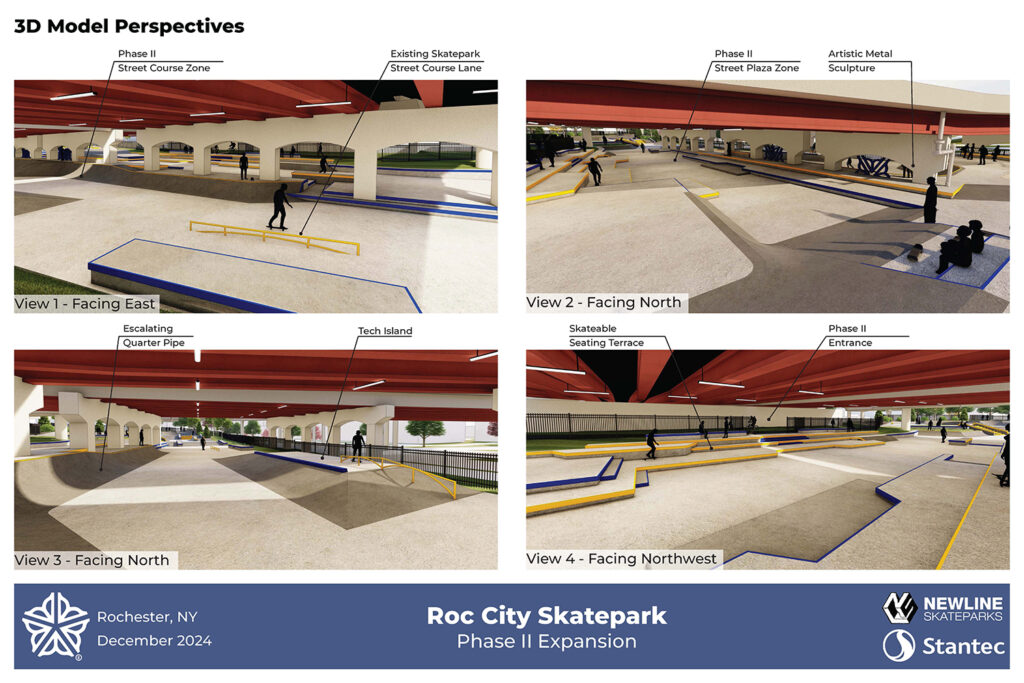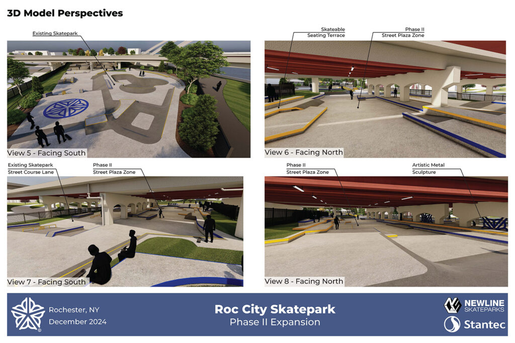We’re happy to share the renderings for Phase 2 of the Roc City Skatepark, as supplied to us by the City of Rochester. We are grateful for their long-time collaboration with the FRIENDS to ensure that Rochester has a top-notch free public skatepark available to all!